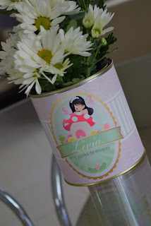 O enfeite de mesa ficou uma graça e foi feito especialmente pelo Tia e pela Vovó da Letícia
